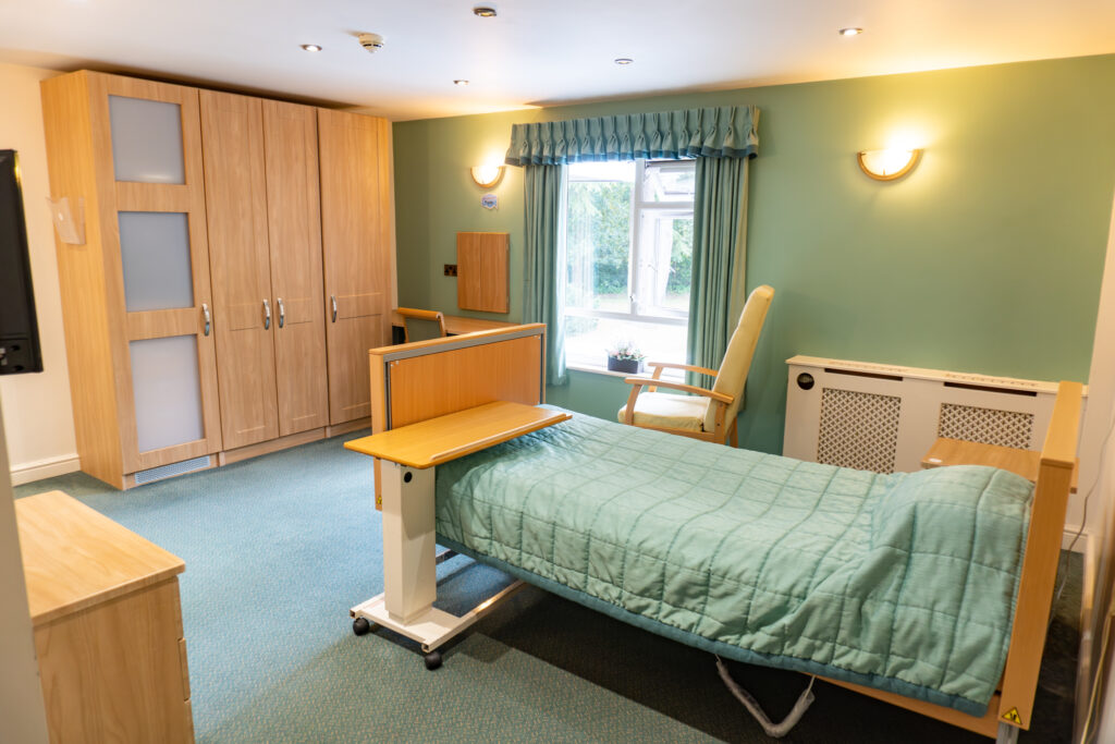Our 46 ensuite bedrooms offer space, privacy and the comforts of home, each including a level-access shower, electric profiling bed, small fridge, television and telephone points, and a user-friendly nurse call system. Some rooms can be adapted for couples to live together.