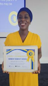 Pictured are RGN nurses Andreea Caitatiu and Mariama Sylla receiving awards and Care manager Meesha Watson with the Robert Harvey House Highly Commended trophy.